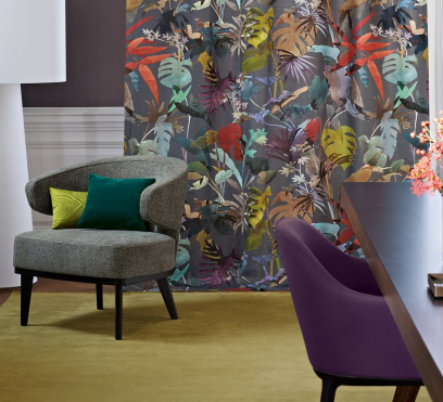 Ткань для штор Paradiso намекает нам о пышных тропиках и богатстве. Образные акварельные мотивы листьев наслоены друг на друга, как растения в джунглях. Независимо от того, находится ли он на светлом или темном фоне, этот расслабляющий льняной принт создает сильный эффект у вашего окна.