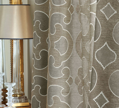 Ткань для штор Соррентино - очень элегантна. Современный вид декоративного рисунка подчеркивает роскошное качество этой ткани. Ручная отделка вышивки действительно выделяет эту ткань и придает ей трехмерное качество.