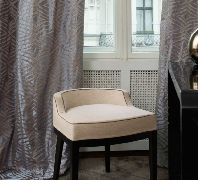 В этой ткани для штор концепция Ikat реализована как вышивка на шелке. Мотив был вышит как универсальный дизайн с нерегулярными швами в этническом стиле. Этот дизайн с его тонкой, но привлекательной цветовой гаммой «тон в тон» подходит для самых разных интерьеров. Чередование материального эффекта шелковой основы и рельефной вышивки придает этому изделию особенные ощущения.