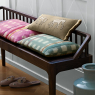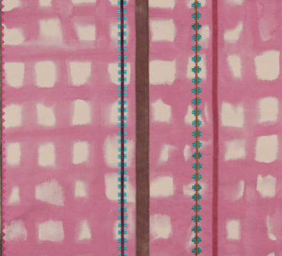 Ткань для штор Souvenir, наверное, самый сложный текстиль в этой коллекции. Специально разработанные и окрашенные бархатные ленты наносятся на принтованный хлопковый фон. Вышитые ленты, состоящие из различных стежков и цветов, служат дополнительным украшением этой уникальной ткани.