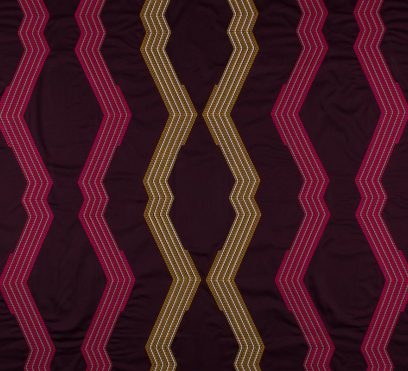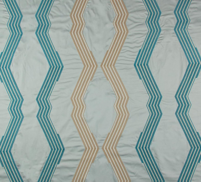 В отличие от ткани Medina, в этой ткани для штор для вышивки используются матовые хлопковые нити. Фирменная особенность ткани - плотные двухцветные вышивальные зигзаги на глянцевой хлопчатобумажной атласной ткани.