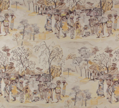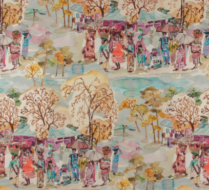 Ткань для штор c цифровой печатью на красивой высококачественной льяной основе с изображением рыночной (ярмарочной) сценки в экзотической обстановке.