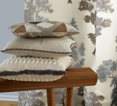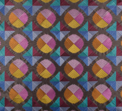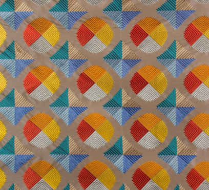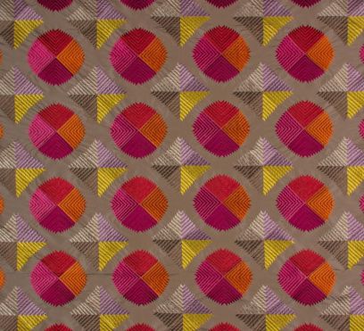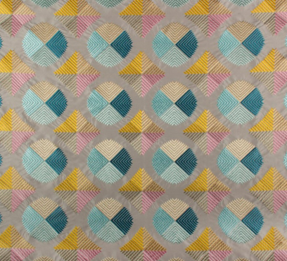 Ткань для штор с элегантной основой из тафты, украшенной яркой орнаментальной вышивкой из вискозы. Это изысканная разноцветная коллекция.