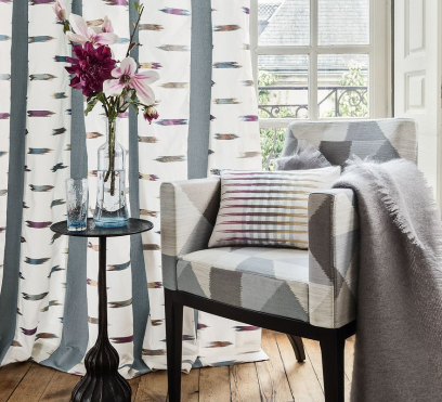 Ткань для штор Gamma поражает своей элегантностью. Ее тканый полосатый рисунок, пересекает горизонтальную вышивку, как прямолинейная волна. Основные черты ткани: яркий оптический эффект, как вспышка цветного освещения, вечный мотив на роскошном атласном хлопке и податливая щедрая драпировка.