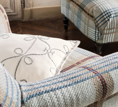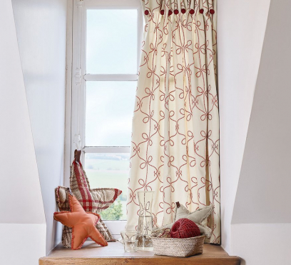 Ткань для штор с привычной вышивкой, которая накручивается и раскручивается на успокаивающем мягком хлопке. Она напоминает традиционную вышивку ручной работы, ее кордонетный дизайн спокойно вращается вокруг и как бы сдерживается контрастным зигзагообразным рисунком.