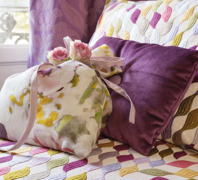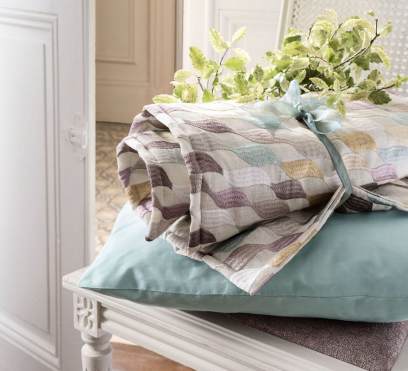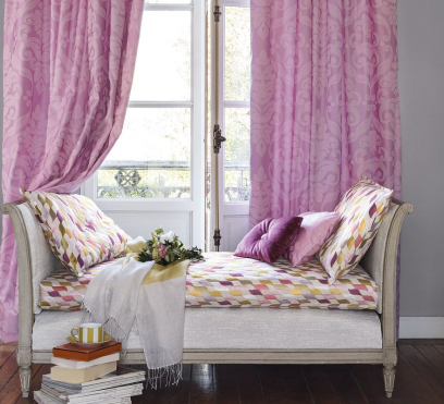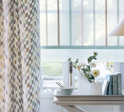 Ткань для штор Après la pluie выгодно отличает изобилие атласных цветов с динамичной веселой вышивкой на чистом льняном фоне. Это полотно идеальное дополнение к ткани Bel été.