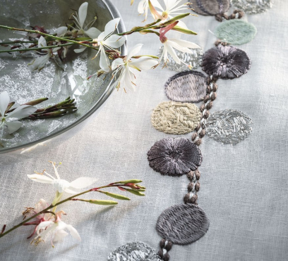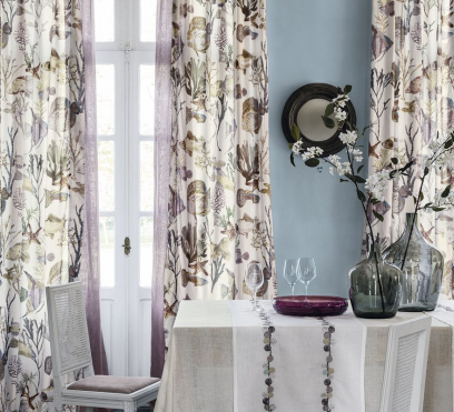 Ткань для штор c оригинальной и утонченной вышивкой из металлических нитей. Вышивка создает на ткани яркий акцент. Она отлично сочетается с тканью Archipel.
