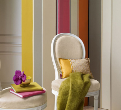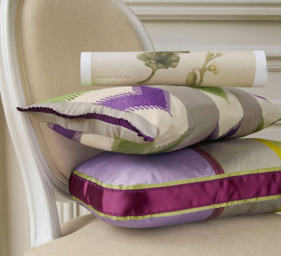 Ткань для штор Salouen украшена ритмичным множеством цветов на шелковом атласе в элегантной полосе. Ткань доступны в в 4-х цветовых вариантах.