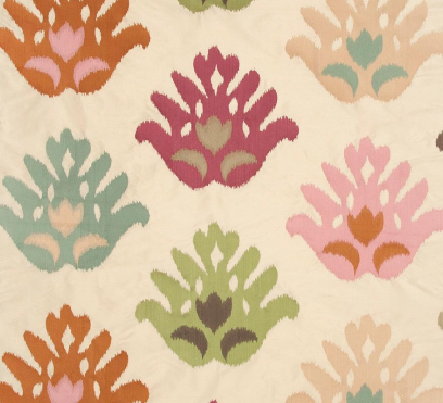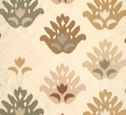 Ткань для штор Voyage украшена блестящими разноцветными этническими мотивами, вышитыми на шелковой тафте.