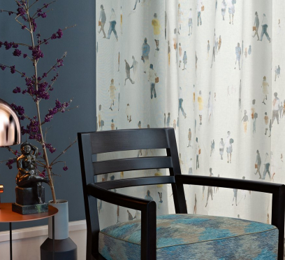 На этой легкой и красивой льняной ткани для штор изображены пешеходы, прогуливающиеся по набережной, изящно расписанные акварельной техникой. Центральная часть этой коллекции и особый узор «Английская набережная» современны и очаровательны.