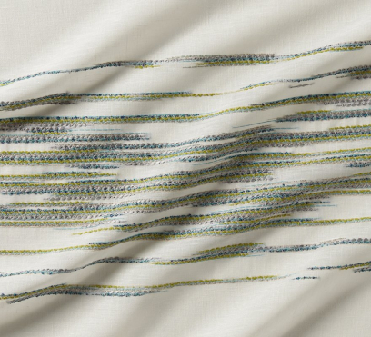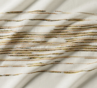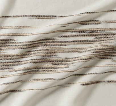 Djerba - тонкая льняная хлопчатобумажная ткань для штор (тюль). Ее пересекает горизонтальная полоса, состоящая из объемных нитей трех разных цветов. Различные характеристики этих нитей - то, что придает горизонтальным полосам этой ткани особое очарование.