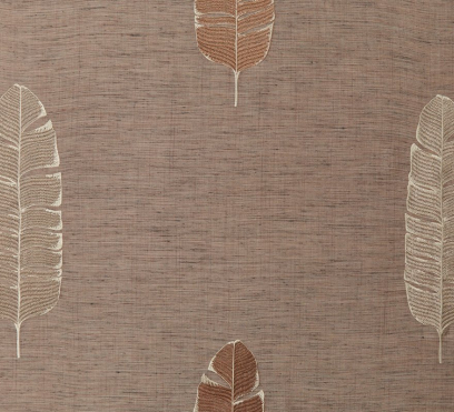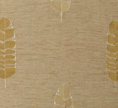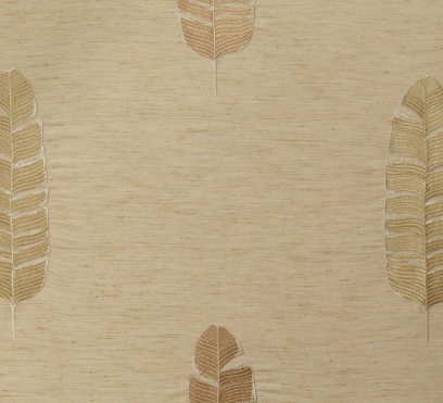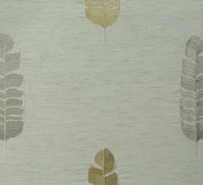 Ткань для штор Feuille de Bananier украшает богатая вышивка в виде банановых листьев на фоне грубоватой основы. Представлено четыре варианта ткани в дополнительных цветах.