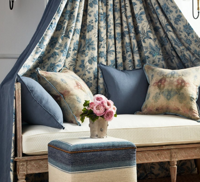 Эта живая и энергичная ткань для штор была разработана на основе классического английского дизайна 18-го века. Этот документальный цветочный принт, напечатанный на льняной / хлопчатобумажной ткани, доступен в 2 цветах: классический синий и эффектный коричневый.