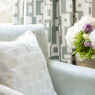 На этой ткани для штор квадраты разного размера, как будто, танцуют вокруг очаровательной вышивки. Небольшой масштаб делает дизайн с полным покрытием всей площади ткани идеальным для драпировки. Блестящая вискозная пряжа, сшитая в чередующихся направлениях, создает двухцветный эффект, который добавляет "движения" в ткань, делая ее игривой и в то же время утонченной.