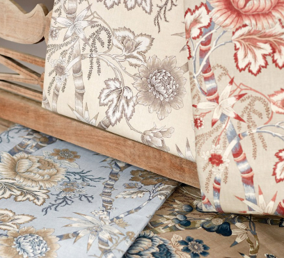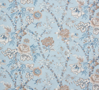 Ткань для штор Cameron Floral Vine, созданная на основе старинного печатного документа 18-го века, представляет собой традиционный цветочный орнамент, который отображает прекрасный рисунок и фантазийные мотивы, характерные для ранних английских и французских принтов. Ткань из хлопка / льна с отделкой из ситца подчеркивает «загородный» характер дизайна.