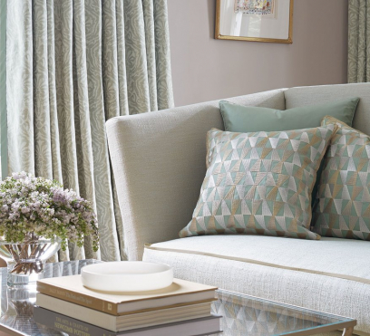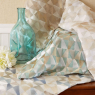 Ткань для штор Clayton Embroide украшена вышивкой из повторяющихся трапеций, полностью покрывающей все поверхность ткани. Она выглядит словно мерцающая грань ограненного драгоценного камня или витража. Нежная вискозная вышивальная нить на белой и специально окрашенной льняной основе создает изысканный эффект, который обеспечивает потрясающую драпировку.