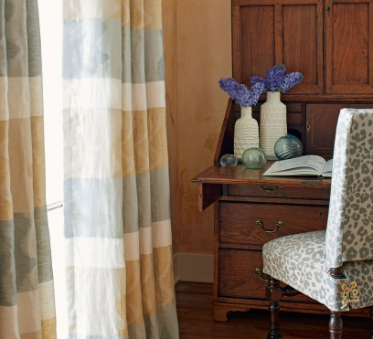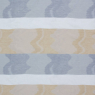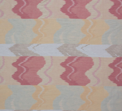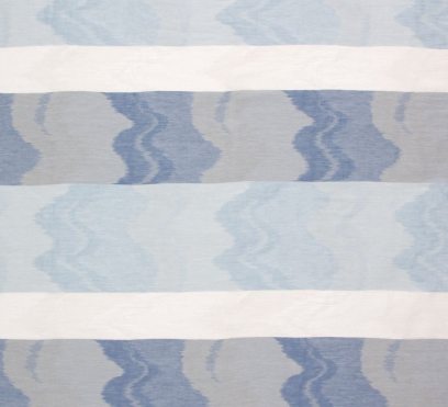 Ткань для штор Laurence выполнена в двойную ширину и украшена горизонтальными полосами. Жаккардовая конструкция ткани имитирует волны традиционной ikats техники, а широкая полоса с цветными блоками выглядит как «au courant».