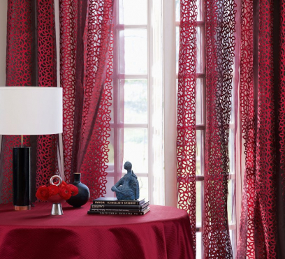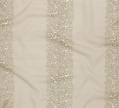 Ткань для штор с игривой вышивкой на тонкой шелковой основе из органзы. Благодаря контрастным цветам контурных нитей выделяются красивые тонкие узоры, образующие полосы и создается интересный трехмерный эффект.