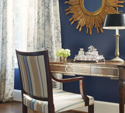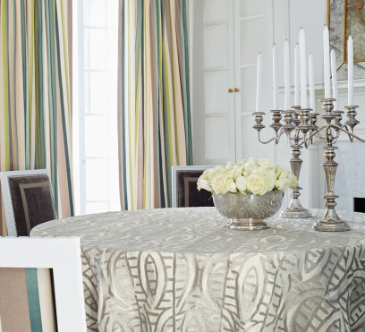 Ткань для штор Lafayette Stripe выполнена в двухцветную шелковую атласно хлопковую полоску. Ее современная компоновка прекрасно сочетается с другими принтами и тканями.