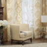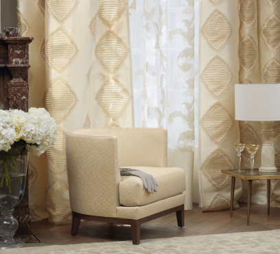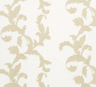 Ткань для штор (тюлевая) Sogno прекрасно подходит для использования в высоких помещениях. Ее игривый рисунок от пола до потолка выполнен с использованием техники «Scherli». Эта сложная техника ткачества использует увлекательный световой и теневой эффект, который создается контрастом между нежной яркостью изображения листочков и тонкой прозрачностью фона. Эта прозрачная ткань была сфотографирована на ярком фоне.