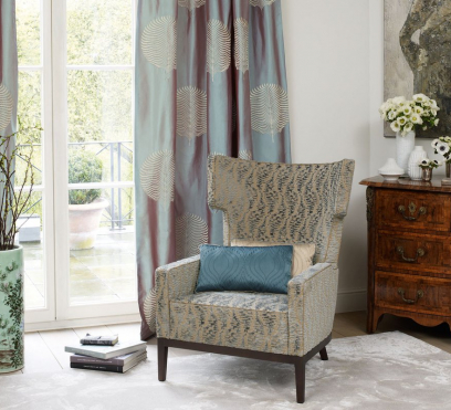 Современный графический дизайн на кисее и связанной сетке придает этому вискозному велюру особый изысканный характер.