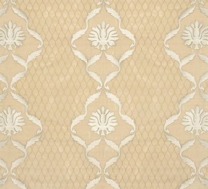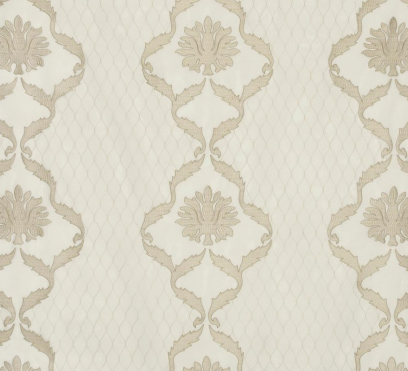 Взаимодействие различных эффектов вышивки и использование металлических нитей придают этой прозрачной ткани для штор особый декоративный характер. Эта прозрачная ткань (тюль) была сфотографирована на ярком фоне.