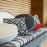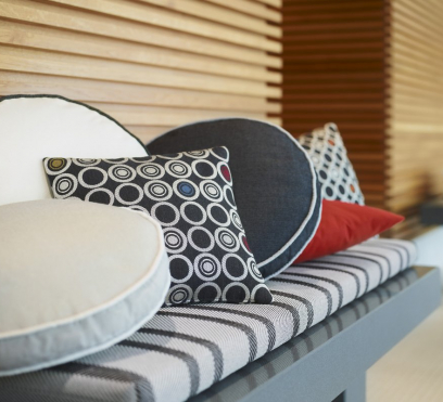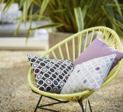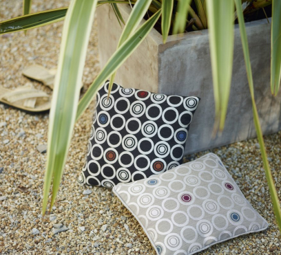Повторяющиеся мотивы круга создают игривый дизайн на этой ткани. Ясные, графические элементы стиля с притягивающими взгляд цветами делают ткань Sunrise привлекательной для драпирования или декоративных валиков.