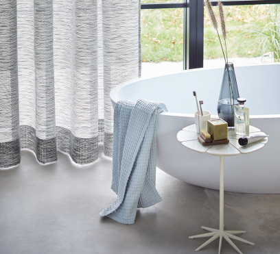 Ткань для штор (тюль) Serene FR использует сбалансированное взаимодействие различных нитей в сочетании со сложным волновым движением тонкой жаккардовой текстуры. В результате эта полупрозрачная ткань обладает естественным видом. Serene FR изготовлена из 100-процентного огнестойкого полиэстера, ее можно стирать, она легко чистится и, следовательно, ее можно использовать в любых домашних условиях или в общественных местах.