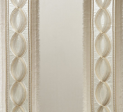 Ткань для штор Noto содержит очень элегантный и искусно вышитый полосатый мотив, который прекрасно подходит для оформления особенно стильного интерьера. Искусная вышивка Noto ручной работы просто завораживает. Эффект чередующегося материала создает изысканный контраст между мерцающим атласом, тонкими нитями люрекса и тонким хлопковым фоном.