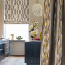 Вышивка, выполненная вручную, создает захватывающий контраст с утонченными, элегантными блестками на тонком хлопковом атласном фоне ткани для штор La Loggia. Этот выразительный текстиль имеет четкий графический дизайн, который добавит акцент практически в любой сложный интерьер.