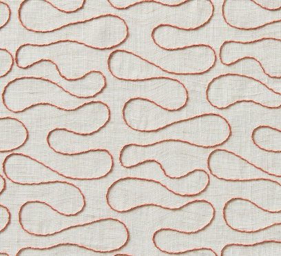 Ткань для штор Le Lagon обязана своим названием работе Матисса в Центре Помпиду, элегантность ее изгибов украшает листы книги «Джаз», составленной в Париже в 1947 году в честь декупажных работ художника. Подавая поочередно петли шнурка как веточки коралла, нить натурального льна накладывается на льняную вуаль с использованием техники вышивки Cornely. Эта необычная техника обязана своим названием Эмилю Корнели, знаменитому французскому вышивальщику конца XIX века, который изобрел машину, способную направлять любой тип причудливой нити на ткань. Первоначально задуманный для высокой моды, этот метод постепенно проник и в мир элитной мебели. Тонкость льняной вуали идеально подходит для штор, а жесткость плетения также делает его идеальным для превращения в жалюзи.